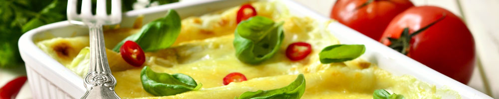 mit Schinken-Imitat, Spargel, Käse überbacken