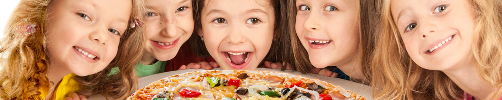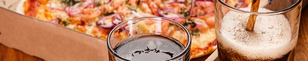 1 Pizzablech, 1 Nudelblech und 1 Salatplatte nach Wahl, 3 Portionen Pizzabrötchen mit Kräutercreme und 1 Flasche Softdrink nach Wahl